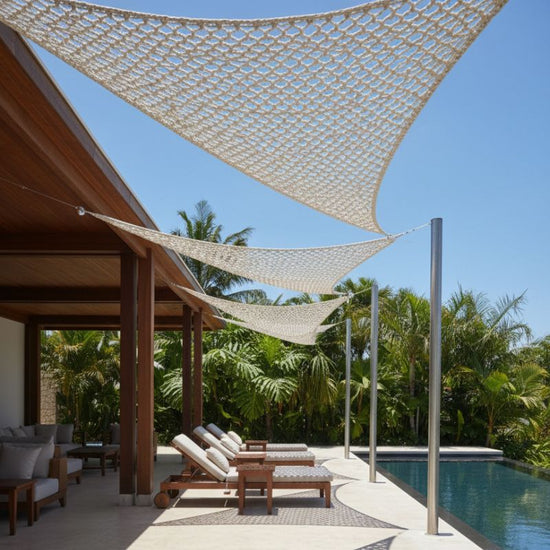 Waar traditionele schaduwdoeken vooral zon weren, brengt een macramé doek een compleet nieuwe categorie: luchtige schaduw, speels licht, en een unieke, mediterrane sfeer. Perfect voor iedereen die warmte zoekt zonder afgesloten te zitten onder dicht materiaal.
