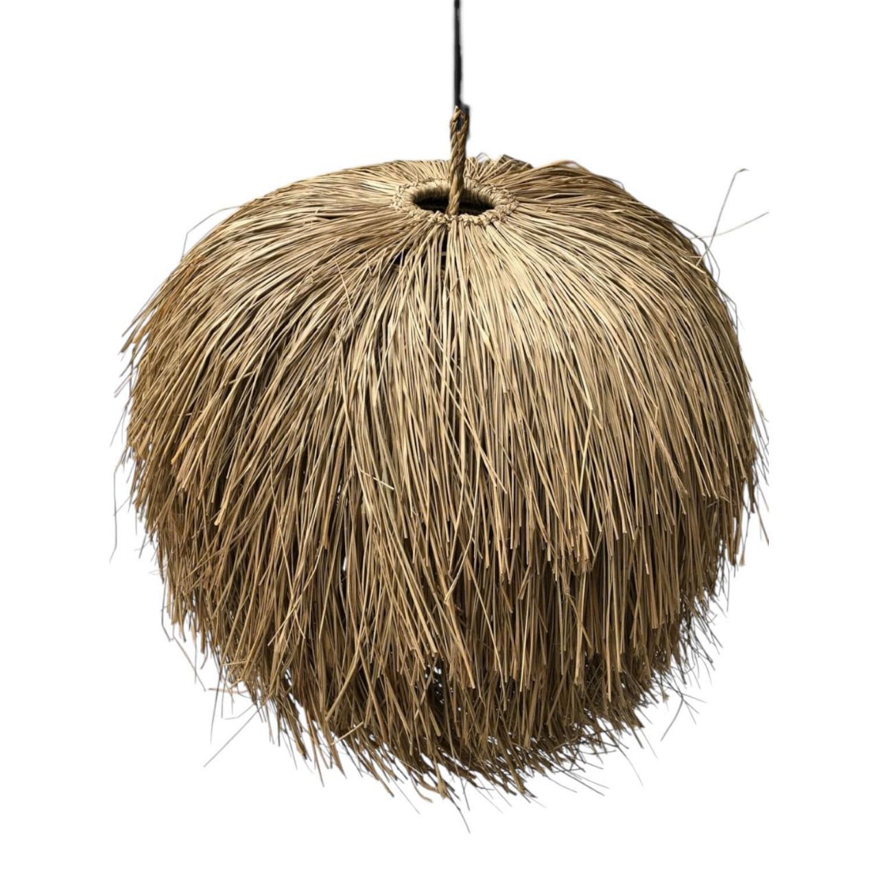 Bringen Sie einen Hauch Natur in Ihr Zuhause mit der wunderschönen Seegras-Hängeleuchte Javi. Mit den Maßen 55×45 cm ist diese Lampe ein echter Blickfang, der jedem Raum sofort eine warme, bohohafte Ausstrahlung verleiht. Der Lampenschirm ist sorgfältig aus natürlichem Seegras gefertigt, was für eine organische Textur und ein verspieltes, einzigartiges Muster sorgt.