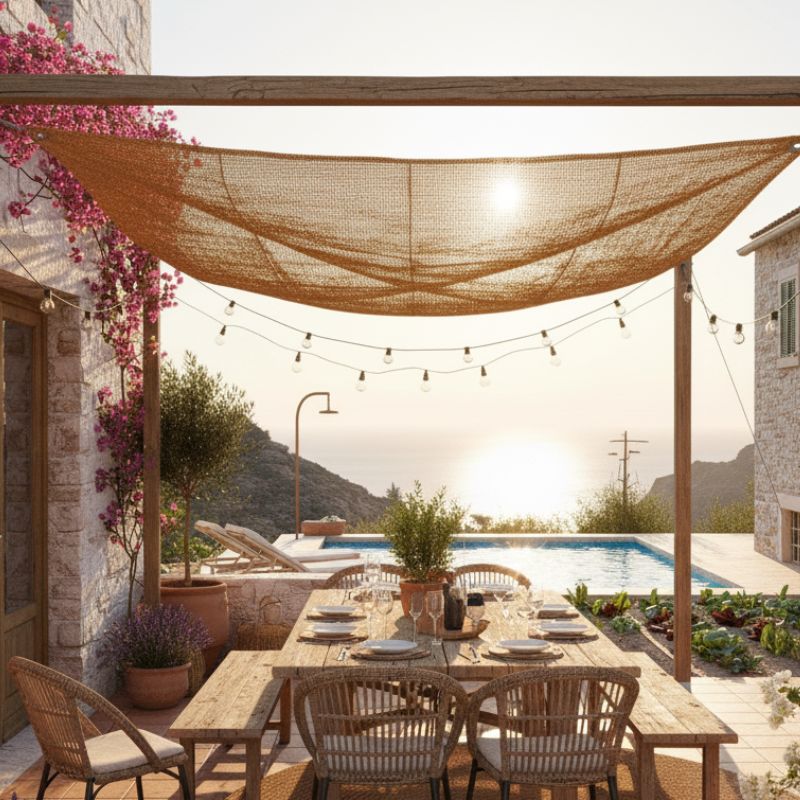 Geniet van natuurlijke schaduw met ons Kokosschaduwdoek